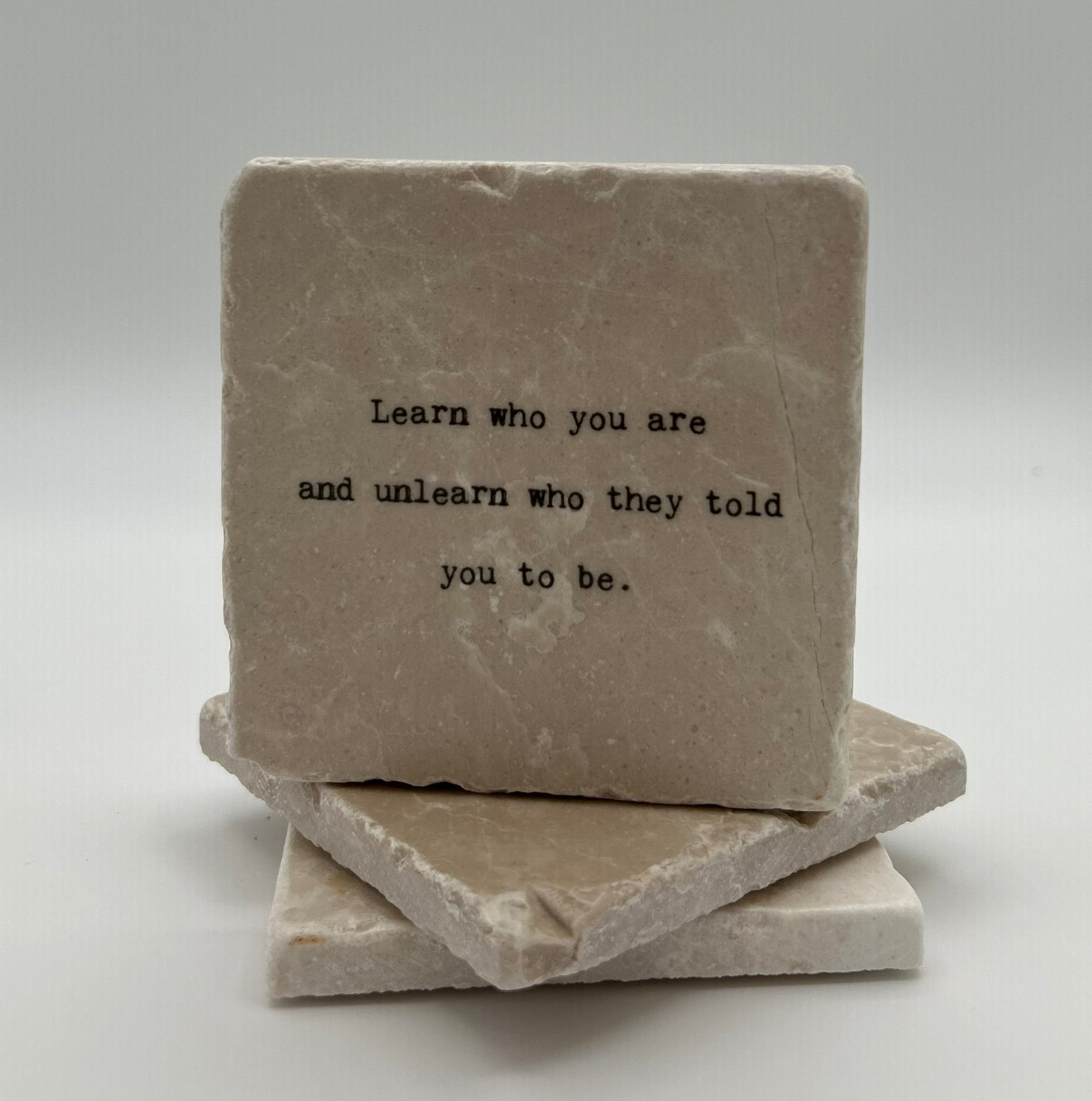 Empowering and thought-provoking, this handcrafted marble coaster is a call to self-discovery and authenticity. It’s a daily nudge to shed old narratives and embrace your true self—boldly, freely, and unapologetically.