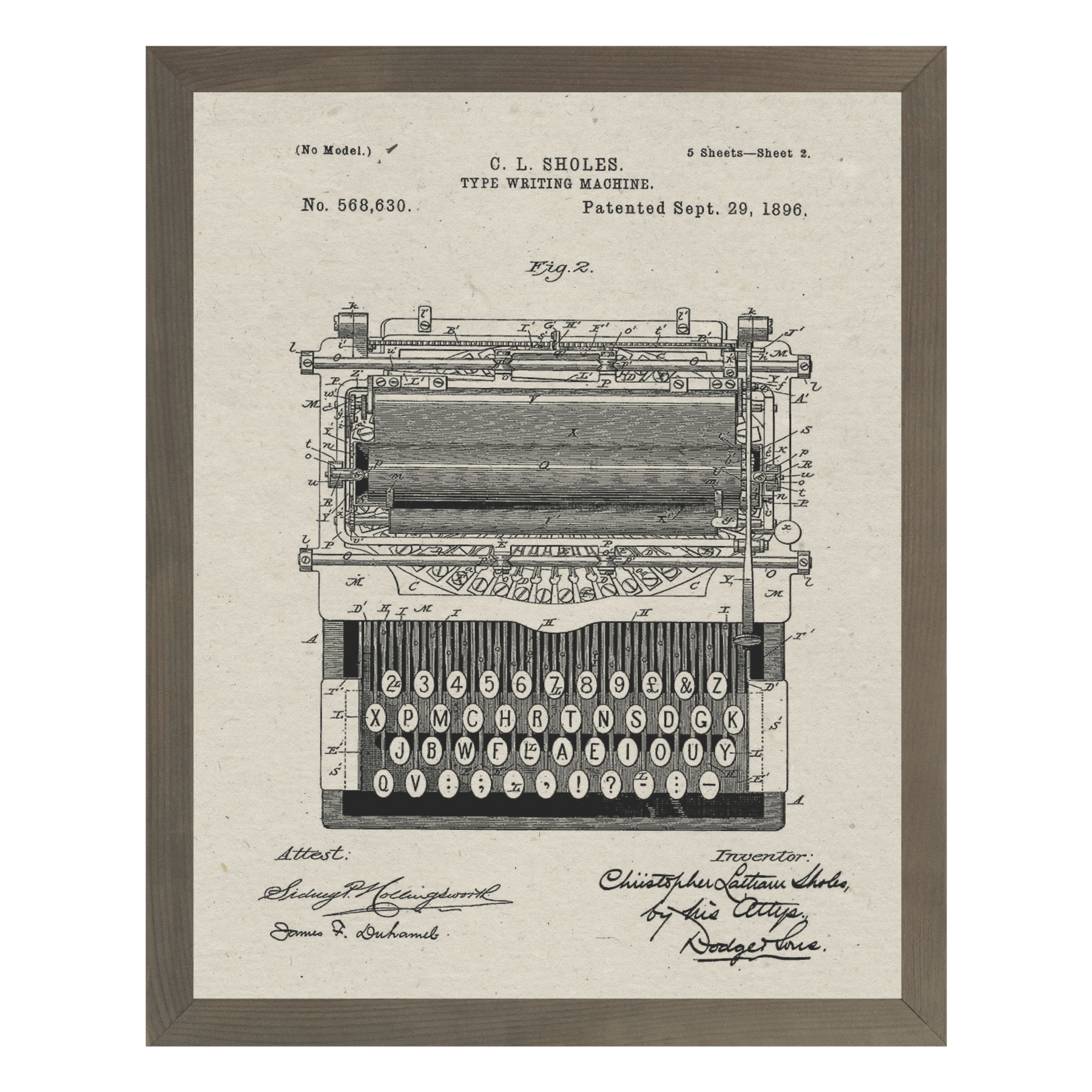 Framed Patents - Typewriter - Cedar Mountain Studios